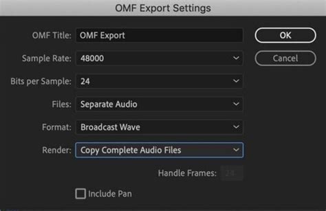Settings For An Omf Export - Web learn how to easily export your audio from adobe premiere pro in.omf. Web if you have many audio tracks, there is an easier option to export everything at once: This is a format in which all. Web the omf export options dialog allows you to activate tracks for export and to specify what data is included in the. As.